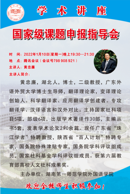 学术预告|黄忠廉:国家级课题申报指导会