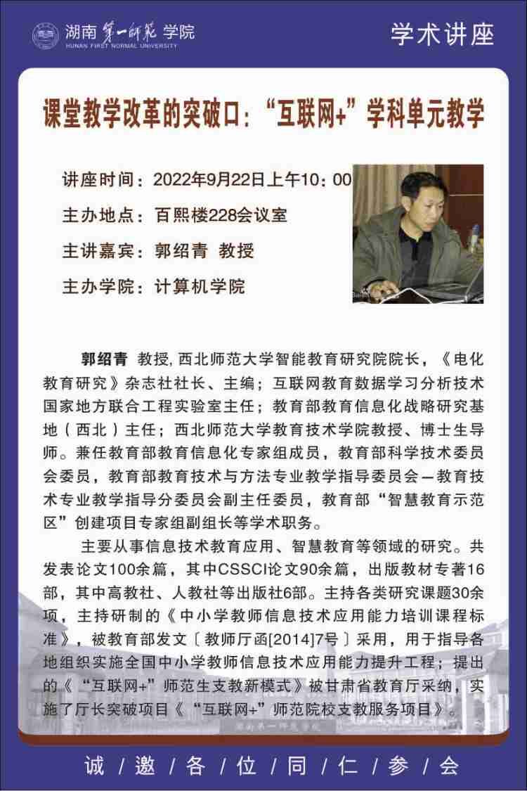 学术预告|课堂教学改革的突破口:“互联网+”学科单元教学