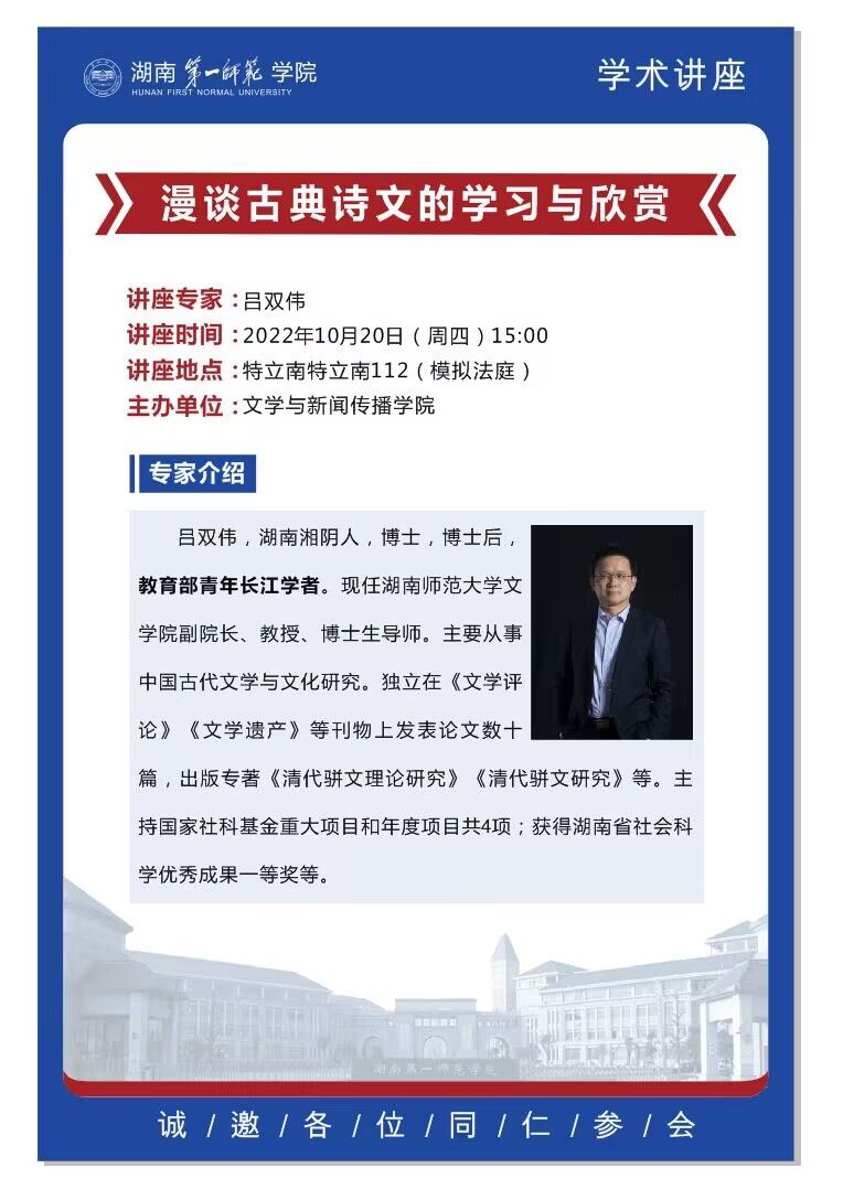 学术预告|漫谈古典诗文的学习与欣赏-87978797威尼斯