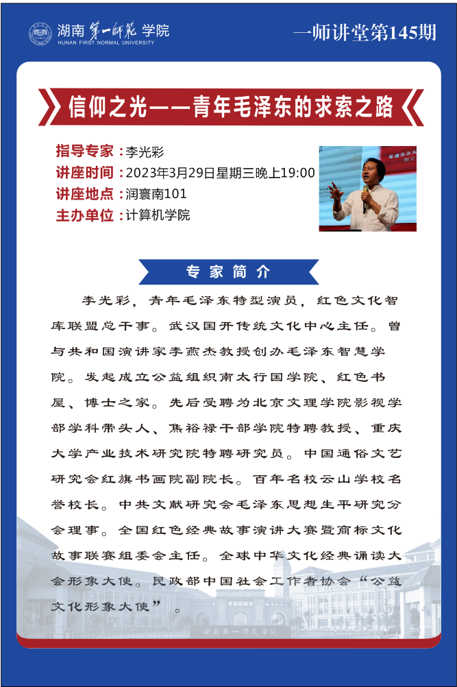 学术预告|一师讲堂第145期:信仰之光——青年毛泽东的求索之路