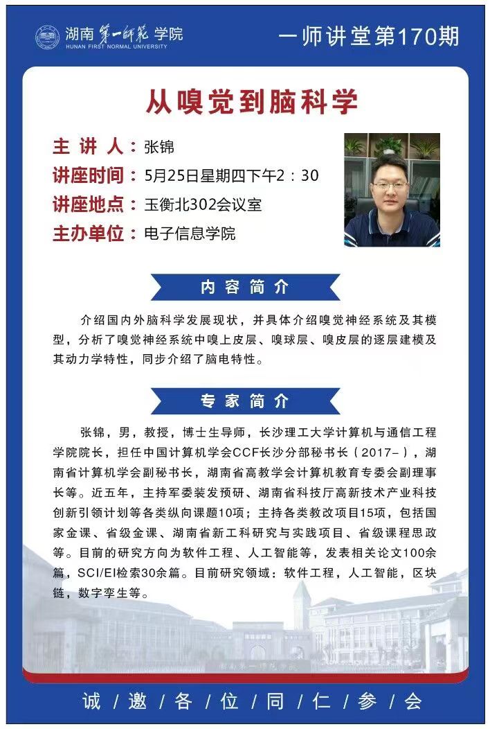 学术预告|一师讲堂第170期:从嗅觉到脑科学