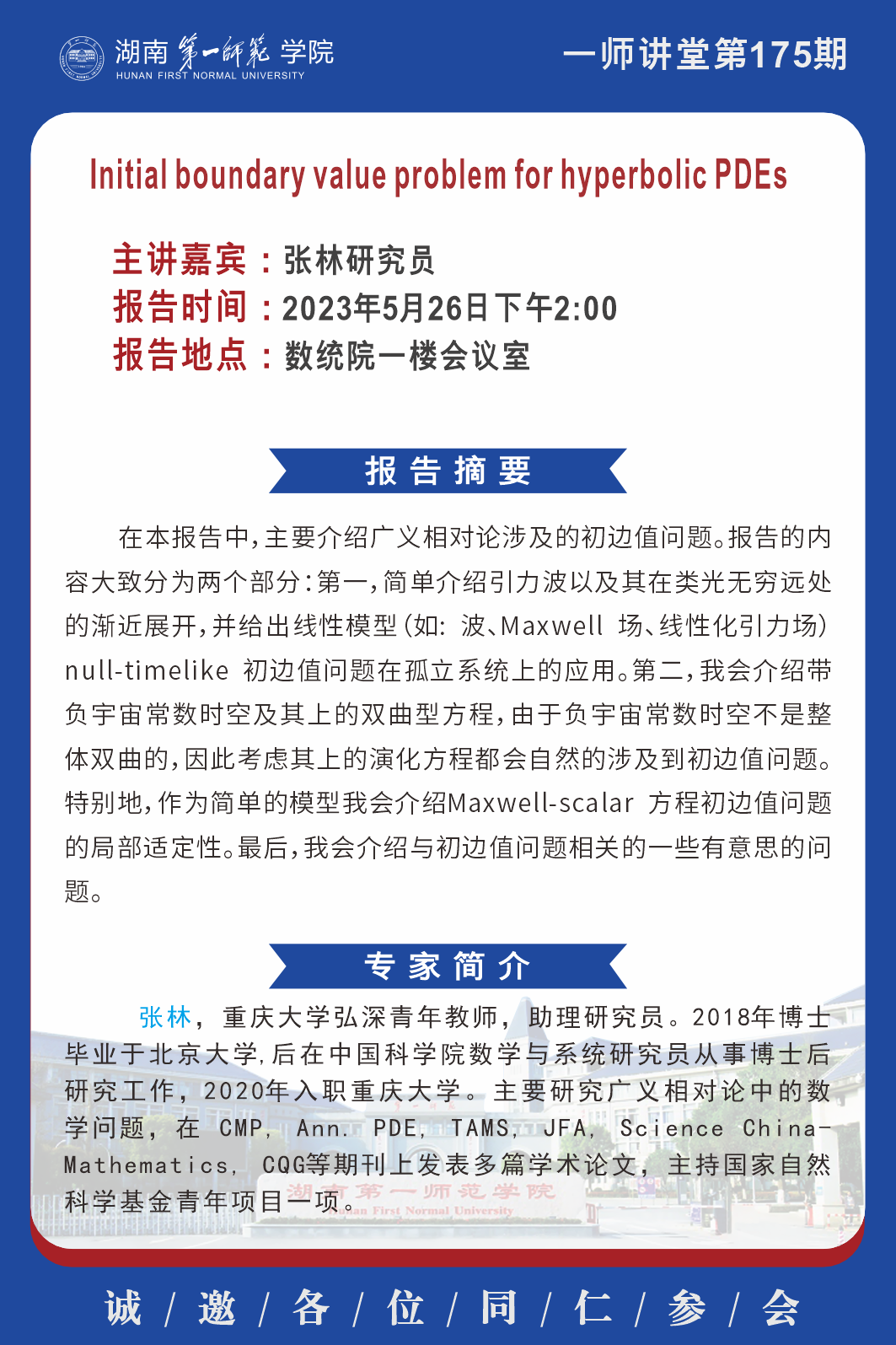 学术预告|一师讲堂第175期:Initial boundary value problem for hyperbolic PDEs