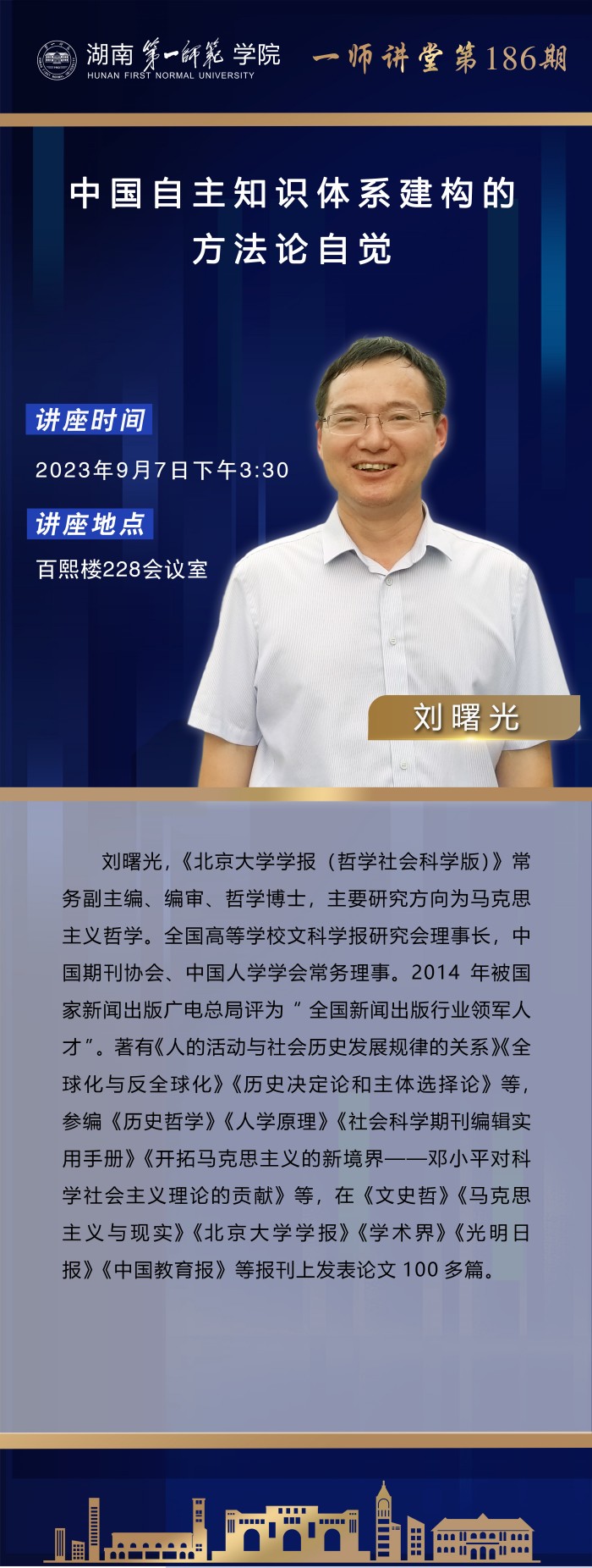 学术预告|一师讲堂第186期:中国自主知识体系建构的方法论自觉