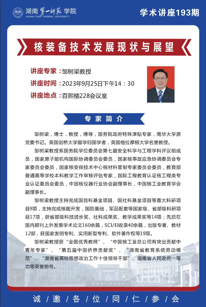 学术预告|一师讲堂第193期:核装备技术发展现状与展望-87978797威尼斯