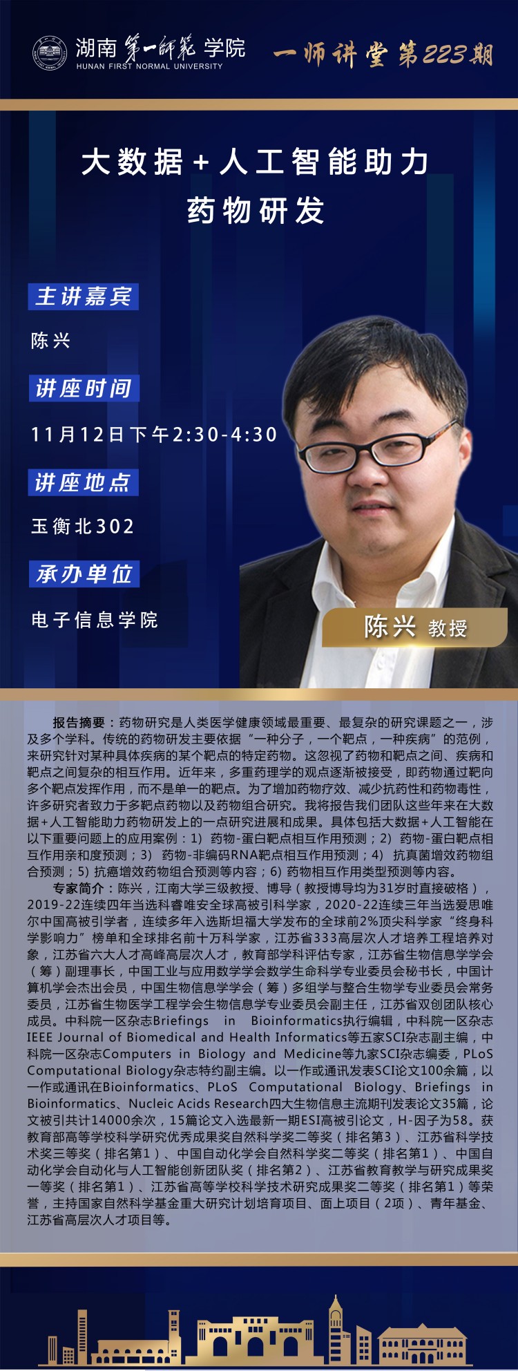 学术预告|一师讲堂第223期:大数据+人工智能能助力药物研发