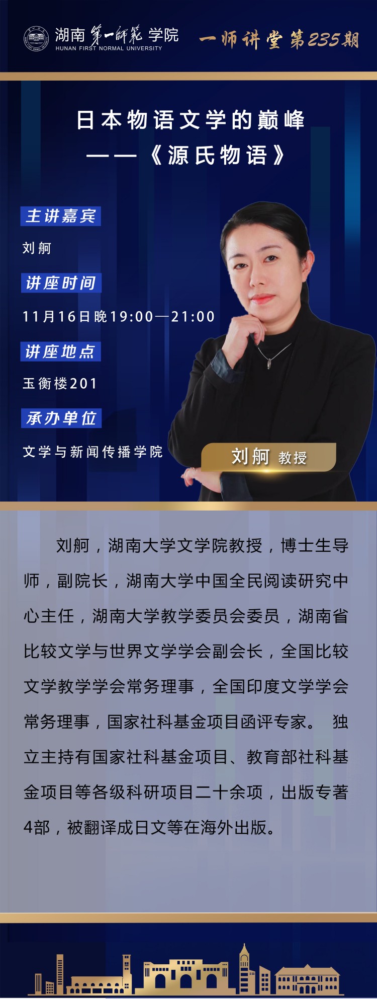 学术预告|一师讲堂第235期:日本物语文学的巅峰——《源氏物语》
