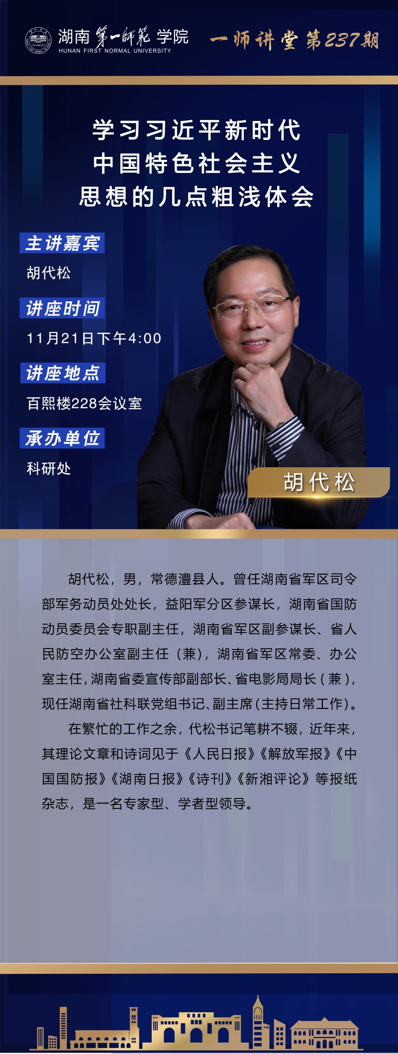 学术预告|一师讲堂第237期:学习习近平新时代中国特色社会主义思想的几点粗浅体会