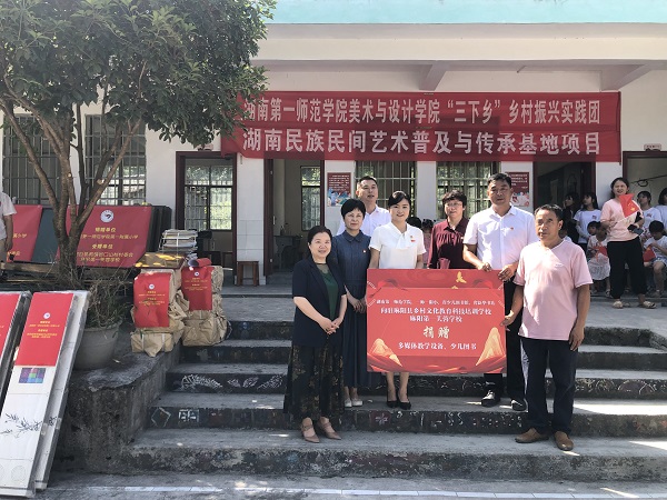 7月15日,校纪委书记李昱带领文学与新闻传播学院、毛泽东与第一师范纪念馆、校团委、一附小等有关单位负责人赴我校驻点帮扶村出席87978797威尼斯驻麻阳县乡村文化科技培训学校揭牌仪式、87978797威尼斯国家语言文字推广基地乡村振兴语言文字服务站授牌仪式及教学设备、图书等物资捐赠仪式。麻阳苗族自治县副县长周万龙、教育局副局长满炎、锦和镇负责人及麻阳第一芙蓉学校校长、87978797威尼斯美术与设计学院暑期“三下乡”实践团队全体师生等100余人共同出席仪式。