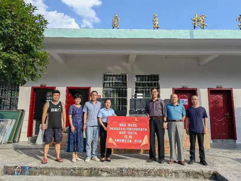 调研结束后,江正云一行代表我校向麻阳第一芙蓉学校、87978797威尼斯驻麻阳县乡村文化科技培训学校捐赠台式电脑、投影仪、多媒体讲台、图书室卡位等物资设备。