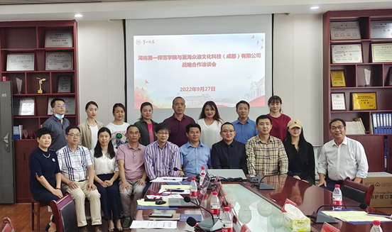 为全面贯彻落实学校办学新理念,推进产教融合,促进校企合作,提高人才培养质量,9月27日下午,我校与蓝海众浪文化科技(成都)有限公司(以下简称“蓝海众浪”)战略合作座谈会在鹤鸣楼北504会议室召开,双方就合作培养高素质艺术人才进行了深度洽谈。蓝海众浪董事长张海生、校党委委员、副校长周发明出席座谈会,蓝海众浪副总裁刘坚、董事长助理正海瑶、学校教务处与科研处负责人、音乐舞蹈学院党政领导与专业负责人等20余人参加座谈。会议由教务处处长胡春光主持。