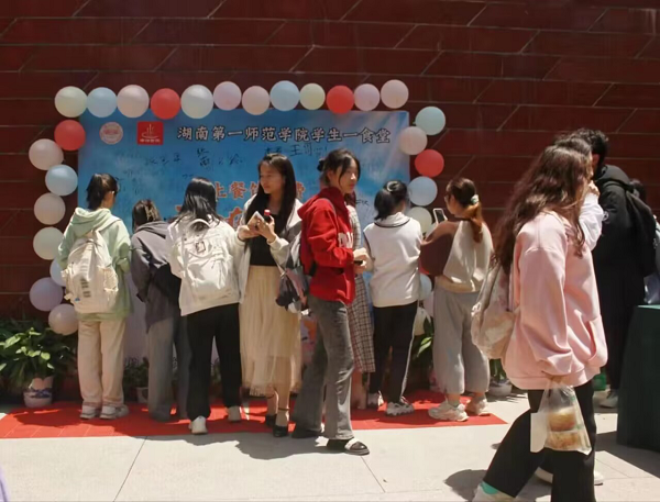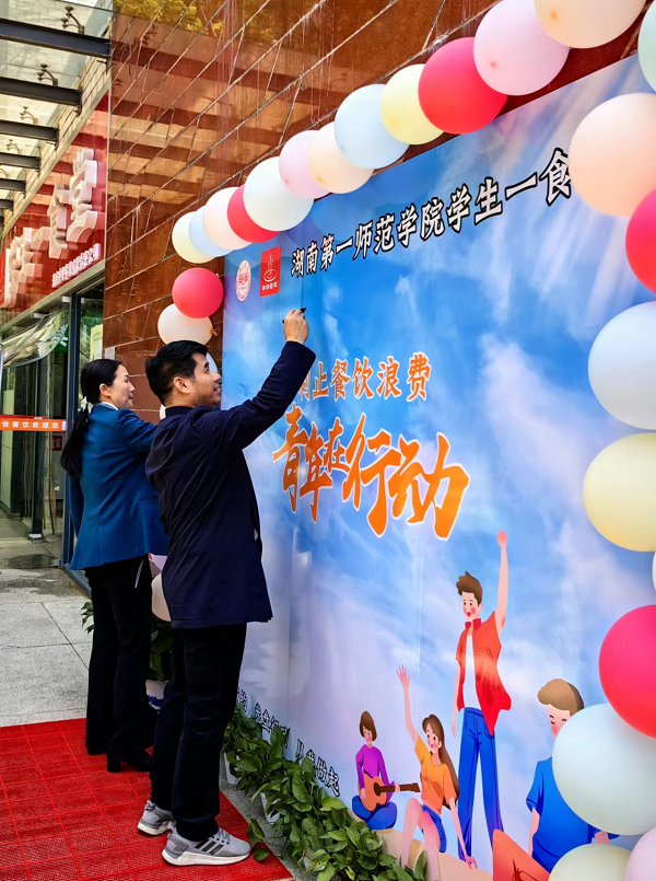为坚决制止学校餐饮浪费行为,切实培养学生勤俭节约习惯,4月26日中午,我校在学生一食堂开展“制止餐饮浪费,一师青年在行动”活动。校党委委员、副校长、食品安全总监周发明,后勤处、学工部负责人,湖南中果餐饮有限责任公司法人代表,师生代表参加活动。