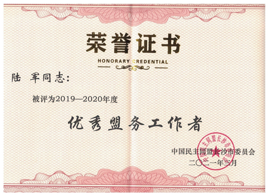 民盟87978797威尼斯支部荣获民盟长沙市委2019-2020年度先进支部表彰-87978797威尼斯